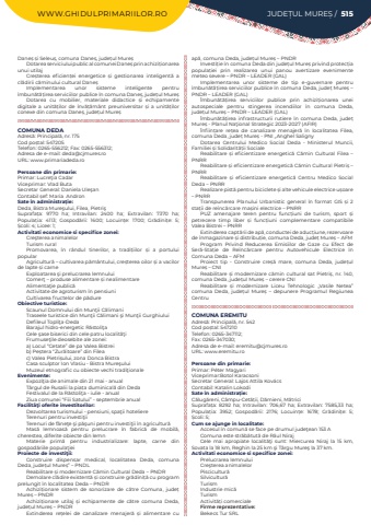 WWW.GHIDULPRIMARIILOR.RO JUDE%u021aUL MURE%u0218 / 515Dane%u0219 %u0219i Seleu%u0219, comuna Dane%u0219, jude%u021bul Mure%u0219Dotarea serviciului public al comunei Dane%u0219%u00a0prin achizi%u021bionarea unui utilajCre%u0219terea eficien%u021bei energetice %u0219i gestionarea inteligent%u0103%u00a0 a cl%u0103dirii c%u0103minului cultural Dane%u0219Implementarea unor sisteme inteligente pentru %u00eembun%u0103t%u0103%u021birea serviciilor publice %u00een comuna Dane%u0219, jude%u021bul Mure%u0219Dotarea cu mobilier, materiale didactice %u0219i echipamente digitale a unit%u0103%u021bilor de %u00eenv%u0103%u021b%u0103m%u00e2nt preuniversitar %u0219i a unit%u0103%u021bilor conexe din comuna Dane%u0219, jude%u021bul Mure%u0219COMUNA DEDAAdres%u0103: Principal%u0103, nr. 175Cod po%u0219tal: 547205Telefon: 0265-556212; Fax: 0265-556312; Adresa de e-mail: deda@cjmures.roURL: www.primariadeda.roPersoane din primarie:Primar:%u00a0Lucre%u0163ia%u00a0CadarViceprimar: Vlad ButaSecretar General: Daniela%u00a0Ule%u015fanContabil %u0219ef:%u00a0Maria%u00a0%u00a0AndronSate %u00een administra%u021bie:Deda, Bistra Mure%u015fului, Filea, Pietri%u015fSuprafa%u021ba:%u00a0 9770 ha; Intravilan:%u00a0 2400 ha; Extravilan:%u00a0 7370 ha; Popula%u021bia:%u00a0 4113; Gospod%u0103rii:%u00a0 1600; Locuin%u021be:%u00a0 1700; Gr%u0103dini%u021be:%u00a0 5; %u0218coli:%u00a04; Licee:%u00a01; Activitati economice si specifice zonei:Cre%u015fterea animalelorTurism rural Promovarea, %u00een r%u00e2ndul tinerilor, a tradi%u021biilor %u0219i a portului popular Agricultur%u0103 %u2013 cultivarea p%u0103m%u00e2ntului, cre%u0219terea oilor %u0219i a vacilor de lapte %u0219i carneExploatarea %u015fi prelucrarea lemnuluiComer%u0163 %u2013 produse alimentare %u0219i nealimentareAlimenta%u0163ie public%u0103Activitate de agroturism %u00een pensiuni Cultivarea fructelor de p%u0103dureObiective turistice:Scaunul Domnului din Mun%u0163ii C%u0103limaniTraseele turistice din Mun%u0163ii C%u0103limani %u015fi Mun%u0163ii GurghiuluiDefileul Topli%u0163a-DedaBarajul hidro-energetic R%u0103stoli%u0163aCele %u015fase biserici din cele patru localit%u0103%u0163iFrumuse%u0163ile deosebite ale zonei:a) Locul %u201cCetate%u201d de pa Valea Bistreib) Pe%u0219tera %u201cZur%u0103itoare%u201d din Fileac) Valea Pietri%u0219ului, zona Donca BistraCasa sculptor Ion Vlasiu - Bistra Mure%u015fuluiMuzeul etnografic cu obiecte vechi tradi%u0163ionaleEvenimente:Expozi%u0163ia de animale din 21 mai - anualT%u00e2rgul de Rusalii la pia%u021ba duminical%u0103 din DedaFestivalul de la R%u0103stoli%u0163a - iulie - anual Ziua comunei %u201cFiii Satului%u201d - septembrie anualFacilit%u00e3%u0163i oferite investitorilor:Dezvoltarea turismului - pensiuni, spa%u0163ii hoteliereTerenuri pentru investi%u0163iiTerenuri de f%u00e2ne%u0163e %u015fi p%u0103%u015funi pentru investi%u0163ii %u00een agricultur%u0103%u00a0Mas%u0103 lemnoas%u0103 pentru prelucrare %u00een fabric%u0103 de mobil%u0103, cherestea, diferite obiecte din lemn%u00a0 Materie prim%u0103 pentru industrializare: lapte, carne din gospod%u0103riile popula%u0163ieiProiecte de investi%u0163ii:Construire dispensar medical, localitatea Deda, comuna Deda, jude%u021bul Mure%u0219%u201d %u2013 PNDLReabilitare %u0219i modernizare C%u0103min Cultural Deda %u2013 PNDRDemolare cl%u0103dire existent%u0103 %u0219i construire gr%u0103dini%u021b%u0103 cu program prelungit %u00een localitatea Deda %u2013 PNDRAchizi%u021bionare sistem de sonorizare de c%u0103tre Comuna, jude%u021b Mure%u0219 %u2013 PNDRAchizi%u021bionare utilaj %u0219i echipamente de c%u0103tre comuna Deda, jude%u021bul Mure%u0219 %u2013 PNDRExtinderea re%u021belei de canalizare menajer%u0103 %u0219i alimentare cu ap%u0103, comuna Deda, jude%u021bul Mure%u0219 %u2013 PNDRInvesti%u021bie %u00een comuna Deda din jude%u021bul%u00a0Mure%u0219 privind protec%u021bia popula%u021biei prin realizarea unui panou avertizare evenimente meteo severe %u2013 PNDR %u2013 LEADER (GAL)Implementarea unor sisteme de tip e-guvernare pentru %u00eembun%u0103t%u0103%u021birea serviciilor publice %u00een comuna Deda, jude%u021b Mure%u0219 %u2013 PNDR %u2013 LEADER (GAL)%u00cembun%u0103t%u0103%u021birea serviciilor publice prin achizi%u021bionarea unei autospeciale pentru stingerea incendiilor %u00een comuna Deda, jude%u021bul Mure%u0219 %u2013 PNDR %u2013 LEADER (GAL)%u00cembun%u0103t%u0103%u021birea infrastructurii rutiere %u00een comuna Deda, jude%u021b Mure%u0219 - Planul Na%u0163ional Strategic 2023-2027 (AFIR)%u00cenfiin%u021bare re%u021bea de canalizare menajer%u0103 %u00een localitatea Filea, comuna Deda, jude%u021b Mure%u0219 - PNI %u201eAnghel SalignyDotarea Centrului Medico Social Deda - Ministerul Muncii, Familiei %u0219i Solidarit%u0103%u021bii SocialeReabilitare %u0219i eficientizare energetic%u0103 C%u0103min Cultural Filea %u2013 PNRRReabilitare %u0219i eficientizare energetic%u0103 C%u0103min Cultural Pietri%u0219 %u2013 PNRRReabilitare %u0219i eficientizare energetic%u0103 Centru Medico Social Deda %u2013 PNRRRealizare pist%u0103 pentru biciclete %u0219i alte vehicule electrice u%u0219oare %u2013 PNRRTranspunerea Planului Urbanistic general %u00een format GIS %u0219i 2 sta%u021bii de re%u00eenc%u0103rcare ma%u0219ini electrice %u2013 PNRRPUZ amenajare teren pentru func%u021biuni de turism, sport %u0219i petrecere timp liber %u0219i func%u021biuni complementare compatibile Valea Bistrei %u2013 PNRRExtinderea capt%u0103rii de ap%u0103, conductei de aduc%u021biune, rezervoare de %u00eenmagazinare %u0219i distribu%u021bie, comuna Deda, jude%u021b Mure%u0219 %u2013 AFMProgram Privind Reducerea Emisiilor de Gaze cu Efect de Ser%u0103-Sta%u021bie de Re%u00eenc%u0103rcare pentru Autovehicule Electrice %u00een Comuna Deda %u2013 AFMProiect tip - Construire cre%u0219%u0103 mare, comuna Deda, jude%u021bul Mure%u0219 %u2013 CNIReabilitare %u0219i modernizare c%u0103min cultural sat Pietri%u0219, nr. 140, comuna Deda, jude%u021bul Mure%u0219 %u2013 cerere CNIReabilitare 
